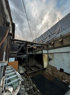 しかし、建物が道路いっぱいに建っている立地のため、初めは人力での解体作業となりました。